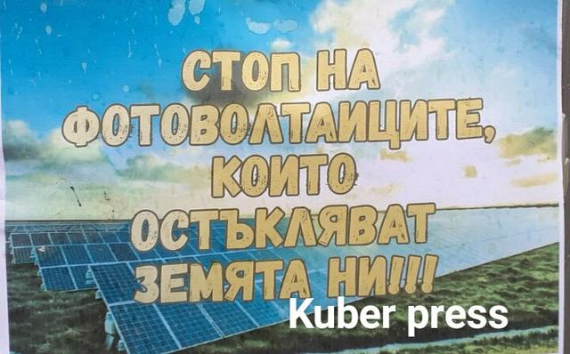 В подкрепа на настояването на активистите беше и плакат с надпис: “Стоп на фотоволтаиците които остъкляват земята ни“.