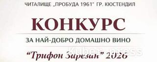 На 15 февруари 2026 г., неделя от 11:00 часа в читалище „Пробуда 1961” гр. Кюстендил кв. „Колуша“ ще се проведе най-големият конкурс в региона за домашно вино „Трифон Зарезан&rdqu ...